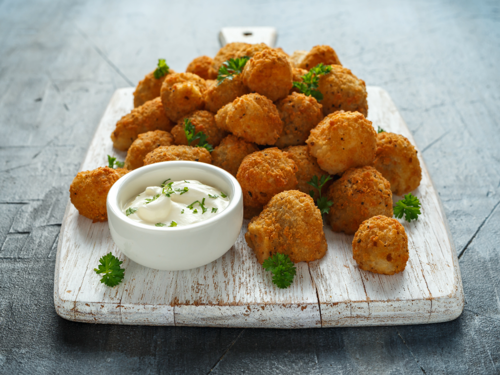 Crispy breaded mushrooms served with a rich garlic sauce for a savory start to your meal.