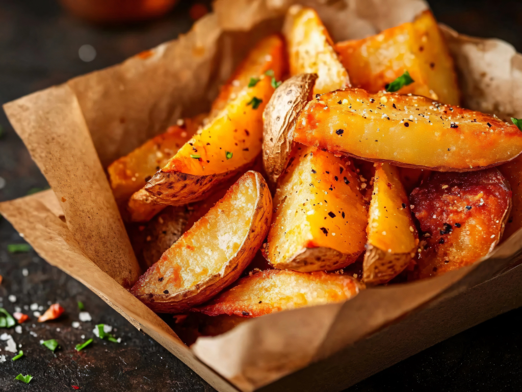 Enjoy our Potato Wedges with Garlic Sauce, a tasty starter perfect for sharing. These crispy wedges are a delightful addition to your meal.
